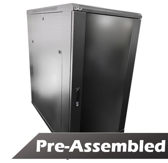 The LDR single section cabinets of the mounting height 22U are most often used in close circuit television, security alarm, and access control system installations. Apart from security and organization, they provide quick access to the elements mounted inside. The glass in the front door is made of smoked tempered glass with a thickness of 5mm. Apart from the possibility to mount devices in 19-inch standard, other devices that are not compatible with the rack system (such as switches or recorders) may be placed in the cabinets with the use of shelves. A wide range of optional accessories allows to adjust the cabinet to your own needs.
